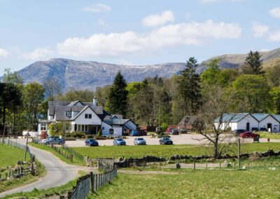 På dette sommerkursus i Skotlands højland, har vi valgt at bo i Storbritanniens største nationalpark Cairngorms. Parken byder på et hav af vandreruter, storslået højlandsnatur med dyreliv, bjerge, bjergsøer, dale, floder og skov samt landbrug med får, kvæg og kornavl. Vi holder højskole på det hyggelige familieejede Glen Clova Hotel dybt inde i Glen Clova dalen omgivet af naturen. Herfra udgår flere af vores vandreture. Højskolen ligger ned til en flod og har en stor have og eget lille landbrug, der forsyner køkkenet med kød og køkkenhavens grønt. De eneste naboer er et par gårde der ligger spredt i området, og der er 20 minutters kørsel til nærmeste by, Kirriemuir.